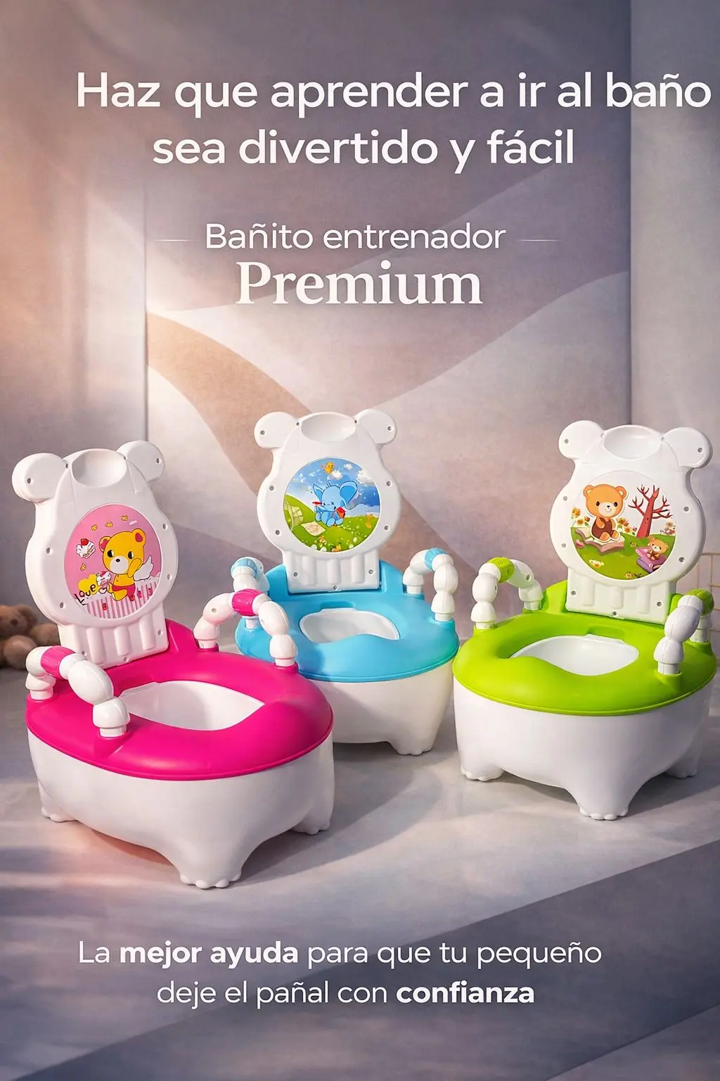 Nuestro bañito entrenador premium está diseñado para acompañar a tu peque en cada paso, dándole confianza y comodidad desde el primer día 🧸🚽