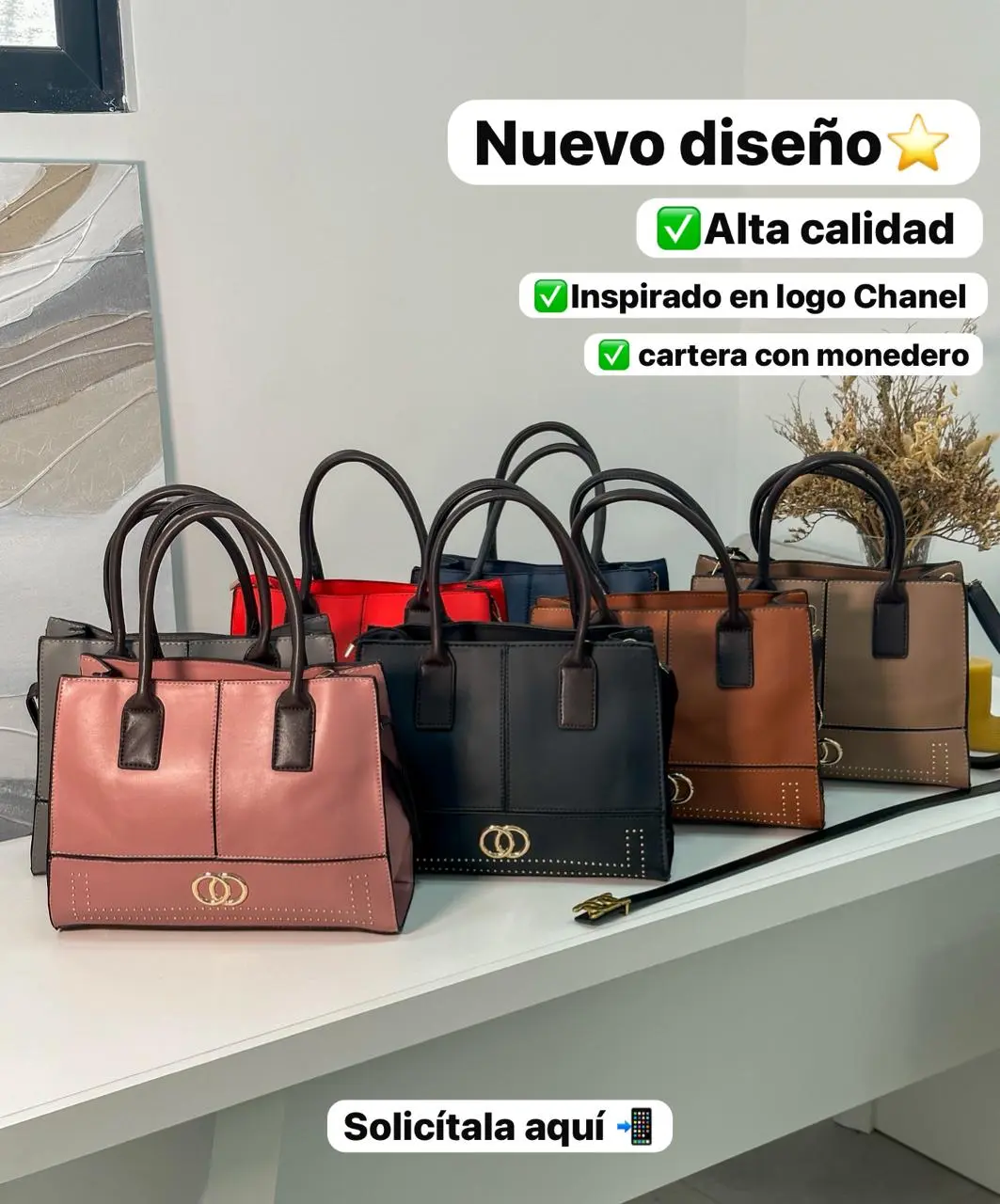 Un diseño inspirado en el logo de Chanel. Está cartera de cuerina es un diseño ideal para uso diario. Suave, cómoda de llevar y con varios compartimientos.