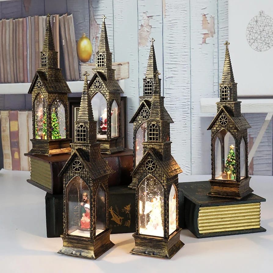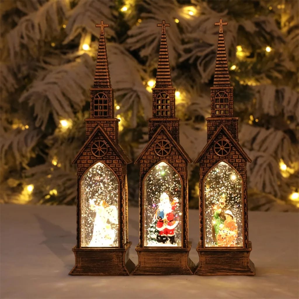 FAROL NAVIDEÑO IGLESIA X3 🎄 Agua en movimiento + luz cálida 🔋 Incluye pilas ✨ Tres diseños diferentes 💖 ¡Decoración que ilumina tu Navidad!